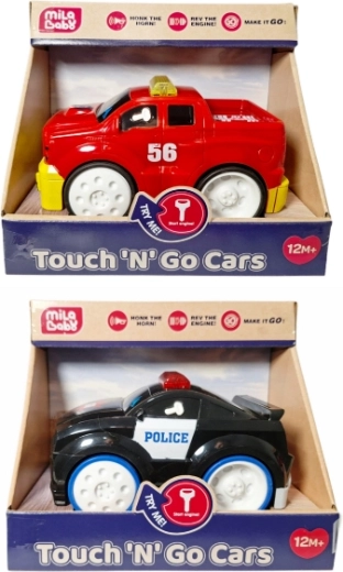 Zabavni interaktivni avtomobilček za najmlajše otroke od 12 mesecev, ki se po pritisku gumba sam zapelje naprej. Ponuja svetlobne in zvočne učinke (trobenta, zagon motorja) za še več zabave. Deluje na AAA baterije (niso priložene). Na voljo sta dve barvni različici – barva je odposlana naključno. Cena velja za 1 kos.