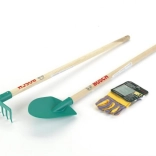 - Celovita oprema – lopata 89 cm, grablje 75 cm in otroške rokavice.
