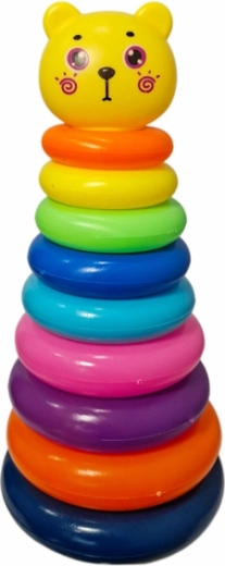 Zabavna in izobraževalna igrača za otroke od 24 mesecev: barvna sestavljiva piramida s podstavkom, zatičem in obročki različnih velikosti. Na vrhu je kot zaključek prikupna medvedkova glavica. Spodbuja fino motoriko, prepoznavanje barv in velikosti ter logično razmišljanje.