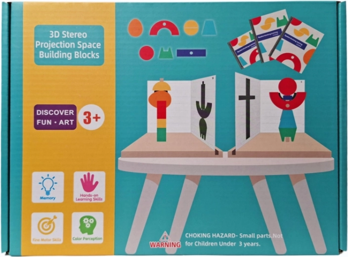 Odkrijte pametno leseno sestavljanko, s katero otroci z lahkoto vstopijo v svet prostorskega oblikovanja. Barvni elementi različnih oblik se zlagajo v trdne 3D konstrukcije, medtem ko projektne kartice in knjižice s predlogami vodijo korak za korakom do uspeha.