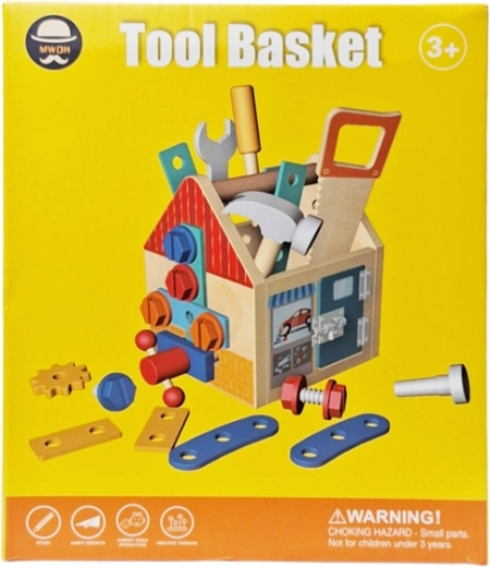 Ta stilski leseni komplet orodja otrokom ponuja varen in zabaven način posnemanja odraslih ter urjenja spretnosti. Praktičen zabojček v obliki hiške ohranja vse dele skupaj in vabi k ustvarjanju ter igram vlog.