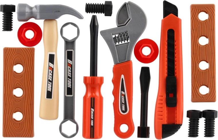Plastična orodja z zaobljenimi robovi in nizko težo so idealna za prve korake pri spoznavanju z orodjem. Otroci lahko varno preizkušajo udarjanje, zategovanje in merjenje.