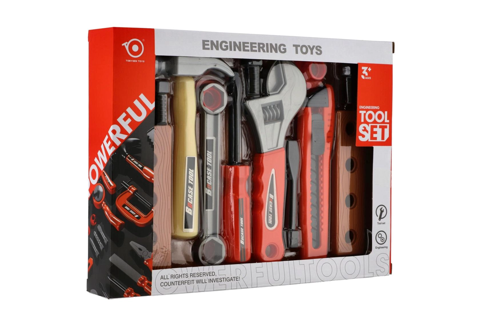 Ta vsestranski komplet orodja otrokom ponuja vse, kar potrebujejo za posnemanje pravega dela obrtnikov – od kladiva in izvijačev do nastavljivega ključa, primeža in vijakov z maticami. Zaradi lahke plastike in varne izdelave je igra udobna in brezskrbna.