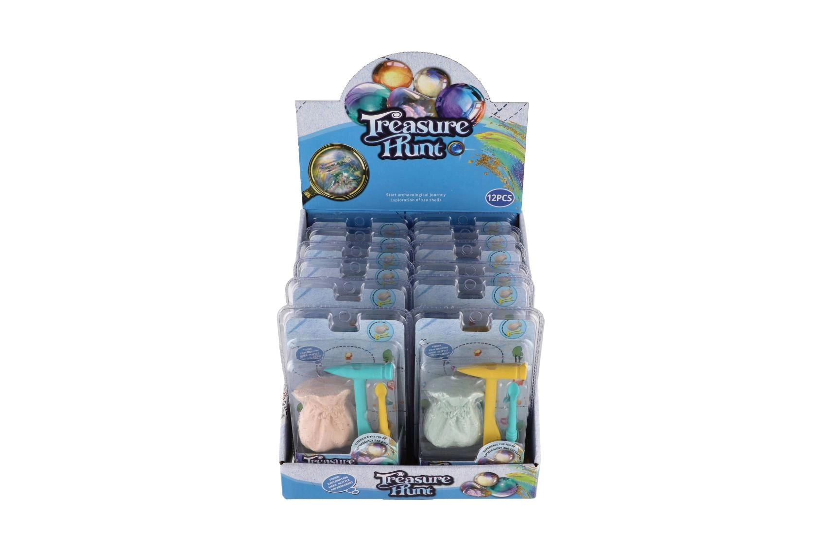 Vsak blister vsebuje samostojen mini komplet, idealen kot izvirno darilo, nagrada ali dodatek v otroških zabavnih paketkih. Razstavitev v prodajnem števcu po 12 kosov olajša prodajo in shranjevanje. Zaradi dveh barvnih različic orodij in blokov je vsako izkopavanje drugačno in napeto.