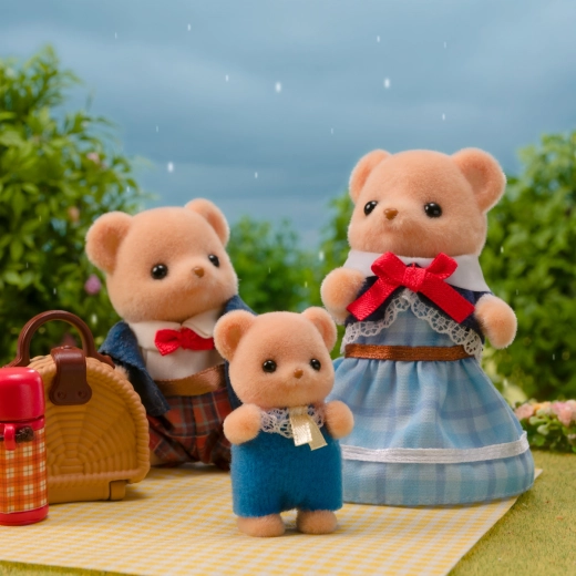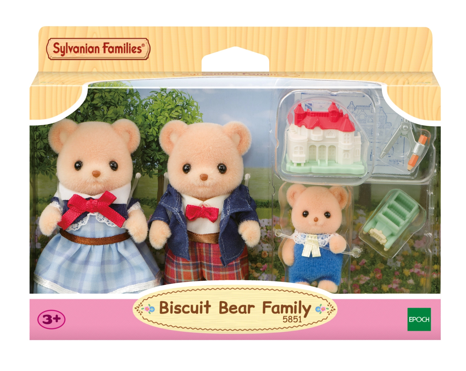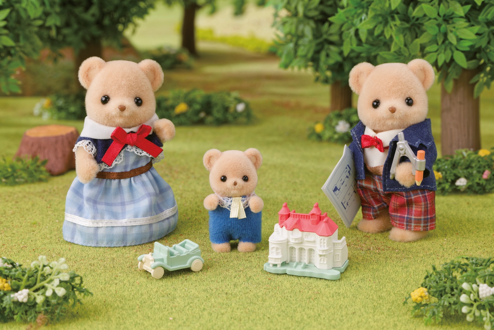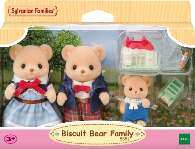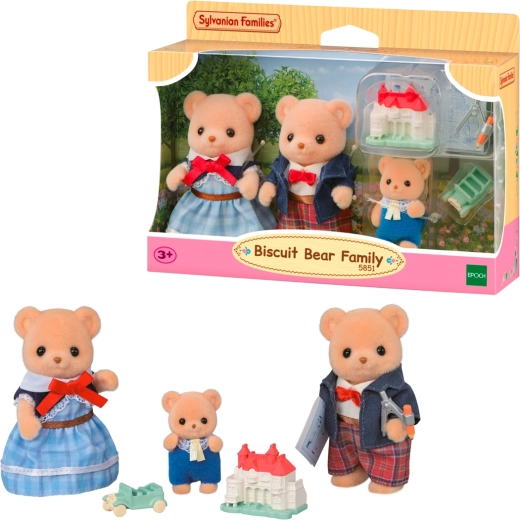 Odkrijte čarobni set Sylvanian Families družina piškotnih medvedkov s tremi prikupnimi figuricami – očkom, mamico in hčerko – prekritimi z mehkim semišem. Vključeni so arhitekturni dodatki, vključno z modelom hiše, miniaturnim avtomobilčkom, načrtom hiše in risalnim šestilom. Figurice imajo premične okončine in glavo, oblačila pa lahko slečete in menjate. Odlična igrača za razvoj domišljije, ustvarjalnosti in igre vlog za otroke od 3. leta dalje.