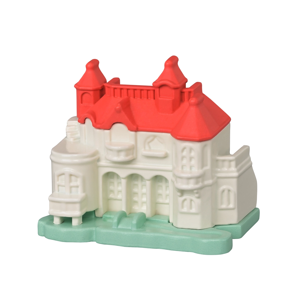 Kombinirajte starinski avtomobilček in miniaturno hišo z rdečo streho za realistične zgodbe iz vsakdanjega življenja.