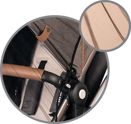 Mehak, a odporen material zdrži vsakodnevno uporabo ter ohranja dojenčka na varnem in v udobju med bivanjem na prostem.