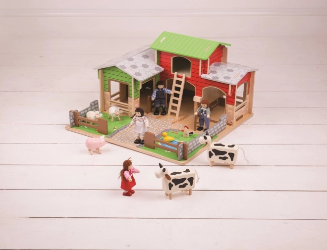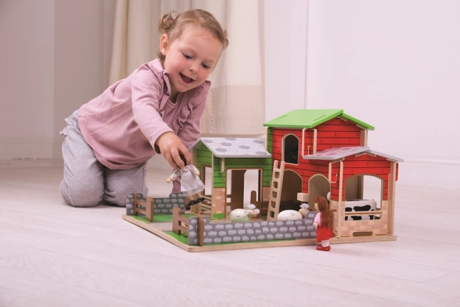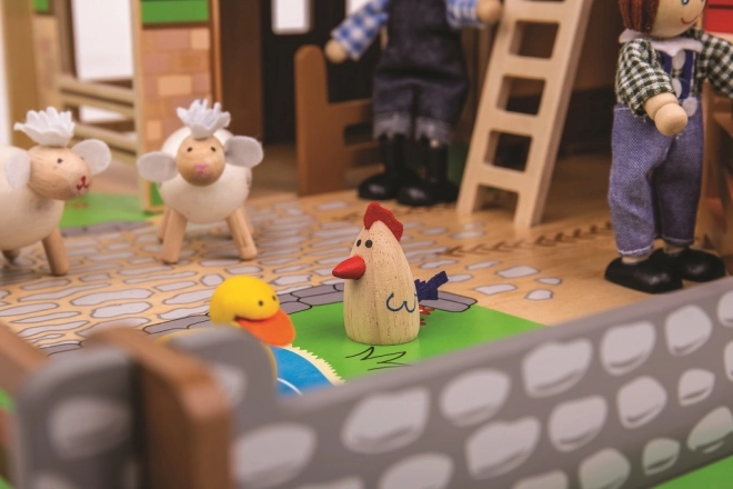 Set je izdelan iz kakovostnega lesa iz odgovornih virov in je združljiv z dodatnimi dodatki, ki jih lahko kadarkoli dokupite. Realistični elementi, kot so račje jezerce, garaža za traktor in ograde s premičnimi vrati, spodbujajo domišljijsko igro, pripovedovanje in razvoj fine motorike.