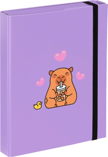 Praktičen notranji žep ter sprednji preklop z elastiko zanesljivo fiksirata dokumente, da iz mapic nič ne izpade. Idealno za šolarje in študente, ki želijo združiti funkcionalnost z izvirnim dizajnom kapibare.