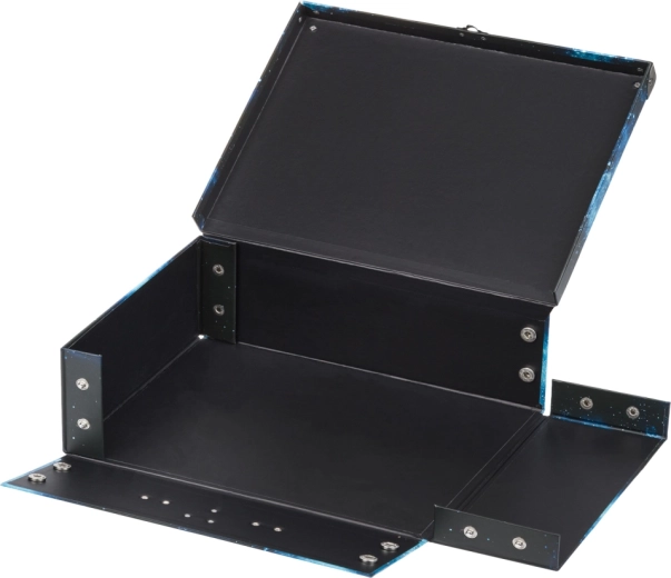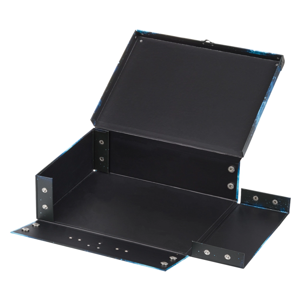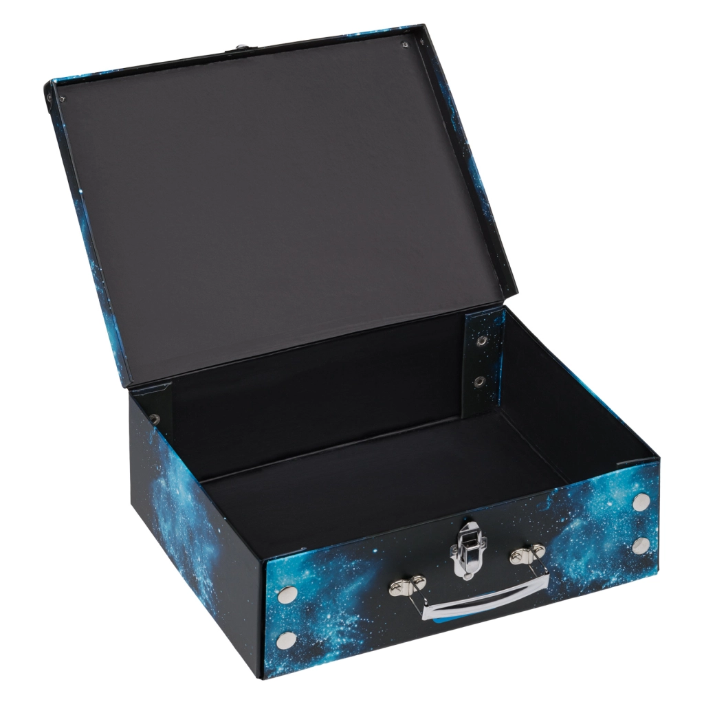 Zahvaljujoč ojačanim kovinskim vogalom in kovinskemu okovju brez težav prenese vsakodnevno uporabo. Klasično zapiranje na zaponko varno ohrani vsebino v notranjosti, kovinski ročaj pa zagotavlja udobno prenašanje. Laminirana površina je preprosta za vzdrževanje in se ponaša z dolgo življenjsko dobo.