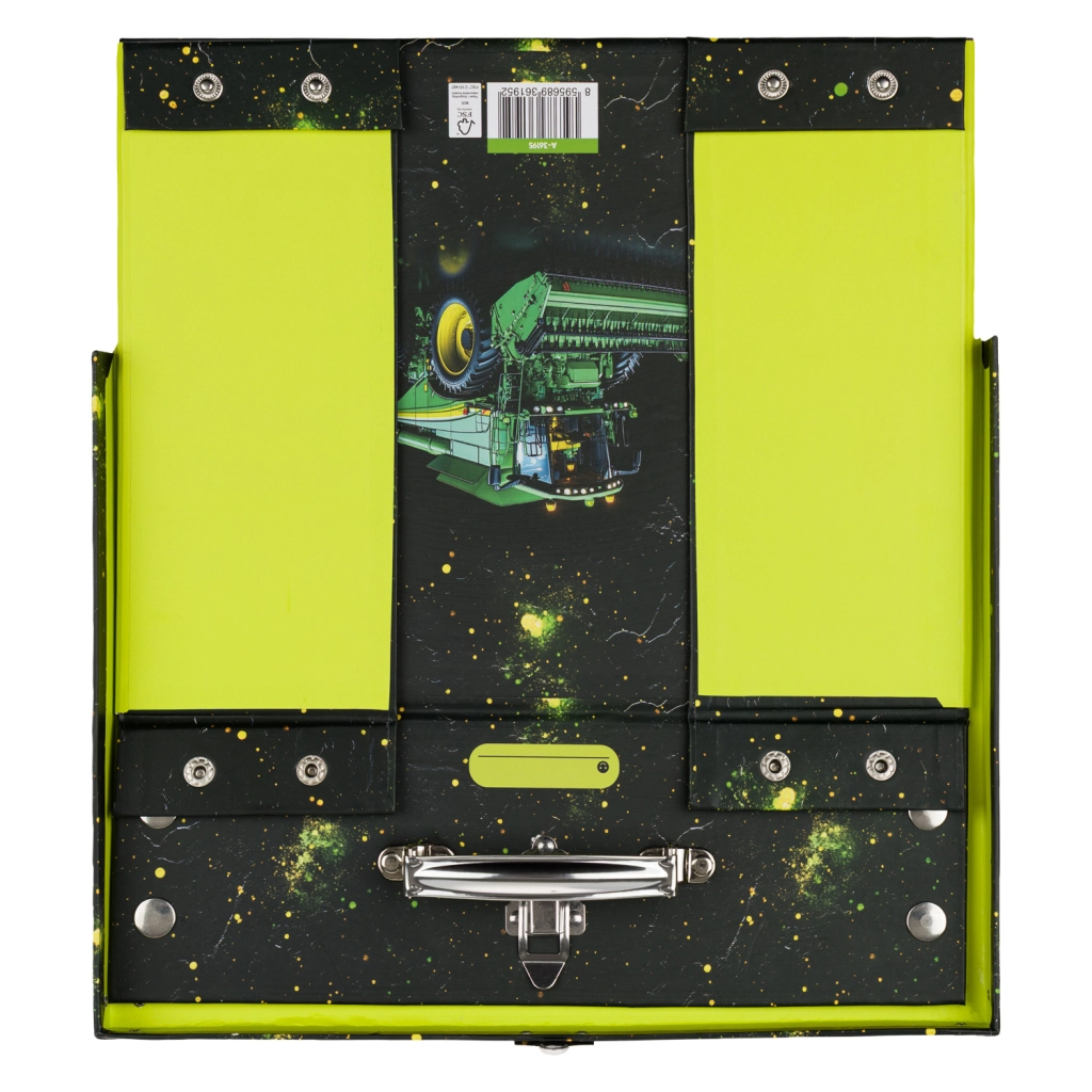 Praktičen in vzdržljiv kovček za likovni pribor, igrače in drobnarije z motivom traktorja. Zahvaljujoč zložljivi konstrukciji z neti ga lahko v nekaj sekundah enostavno zložite ali razprete. Kovinski ročaj in klasično zapiranje z zaponko zagotavljata udobno nošenje in varno shranjevanje. Ojačani kovinski vogali in čvrst laminiran papir podaljšujejo življenjsko dobo.