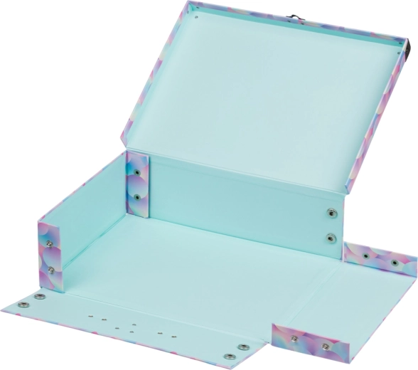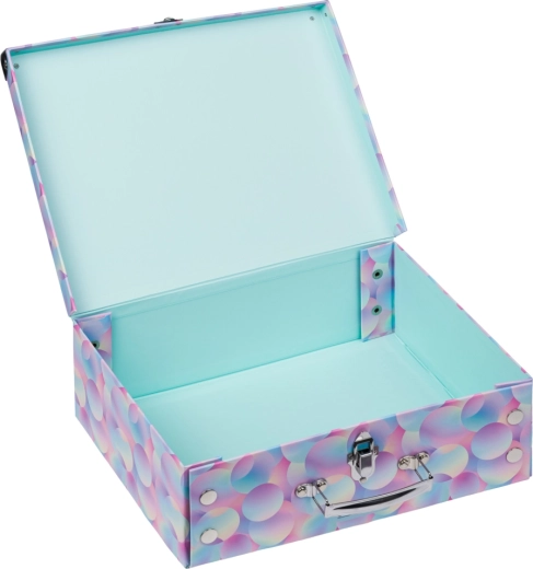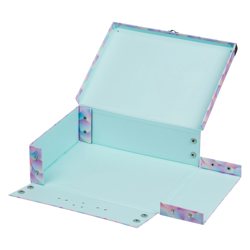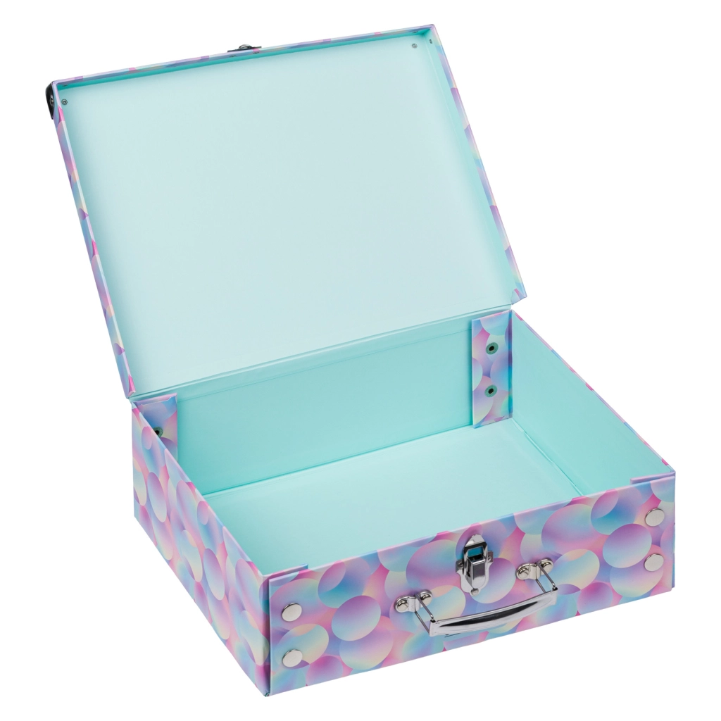 Za varno shranjevanje skrbi kovinska zaponka, ki preprečuje samodejno odpiranje, medtem ko kovinski ročaj omogoča udobno prenašanje. Kovani robovi ščitijo kovček pred udarci in praskami. Čvrst laminiran papir zagotavlja lahkost in vzdržljivost, zato je idealen za vsakodnevno uporabo pri otrocih.
