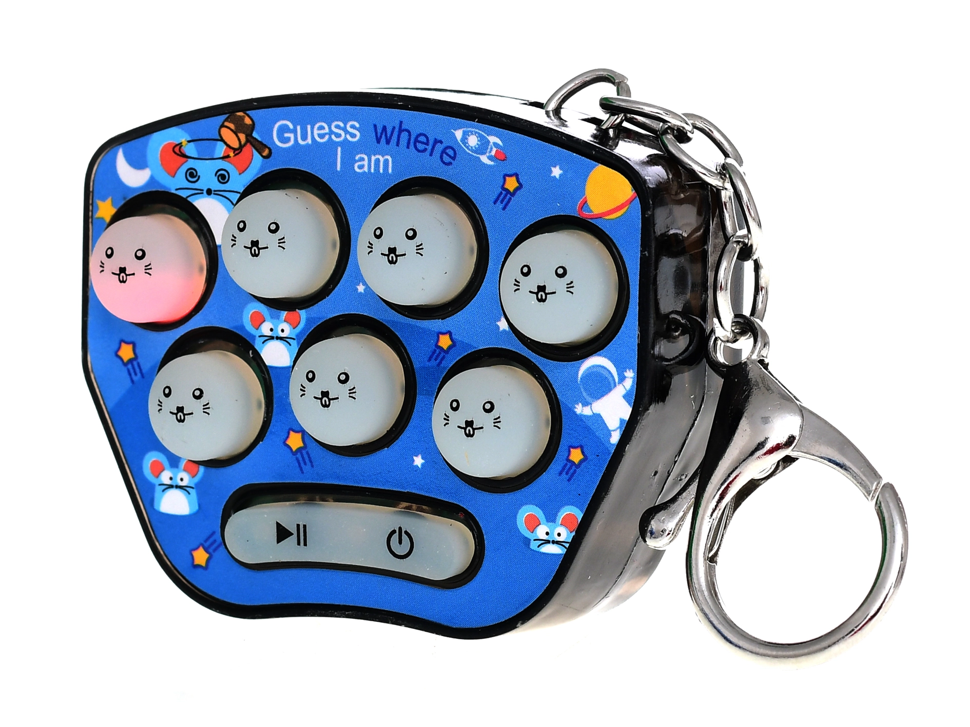 Zabaven in praktičen obesek za ključe Brain Games z motivom hrčka združuje ključni obesek z interaktivno igro. Uríte spomin in odzivnost s pomočjo svetlobnih in zvočnih efektov, ki vas vodijo skozi pravilen vrstni red pritiskov. Zahvaljujoč kompaktni velikosti 6 cm ga zlahka pritrdite na ključe, nahrbtnik ali torbico. Napajanje zagotavljajo 3× LR44 baterije v paketu, obesek je primeren od 3 let in na voljo v 4 barvah.