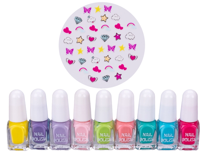 V praktični embalaži najdete 9 mini lakov (2,1 ml) in 8 zabavnih nalepk, s katerimi ustvarite prikupne vzorce in nešteto kombinacij. Laki se zlahka nanašajo in odstranjujejo, zato je manikira hitra, igriva in brez skrbi.