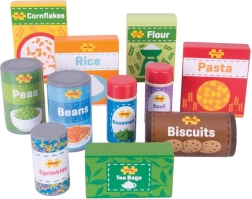 Obogatite otroško igro in jih naučite o zdravi in uravnoteženi prehrani s to raznoliko leseno zbirko živil. Otroci se naučijo, od kod prihaja hrana in kako jo pripraviti. Komplet je idealen za podporo kreativnega in domiselnega igranja.