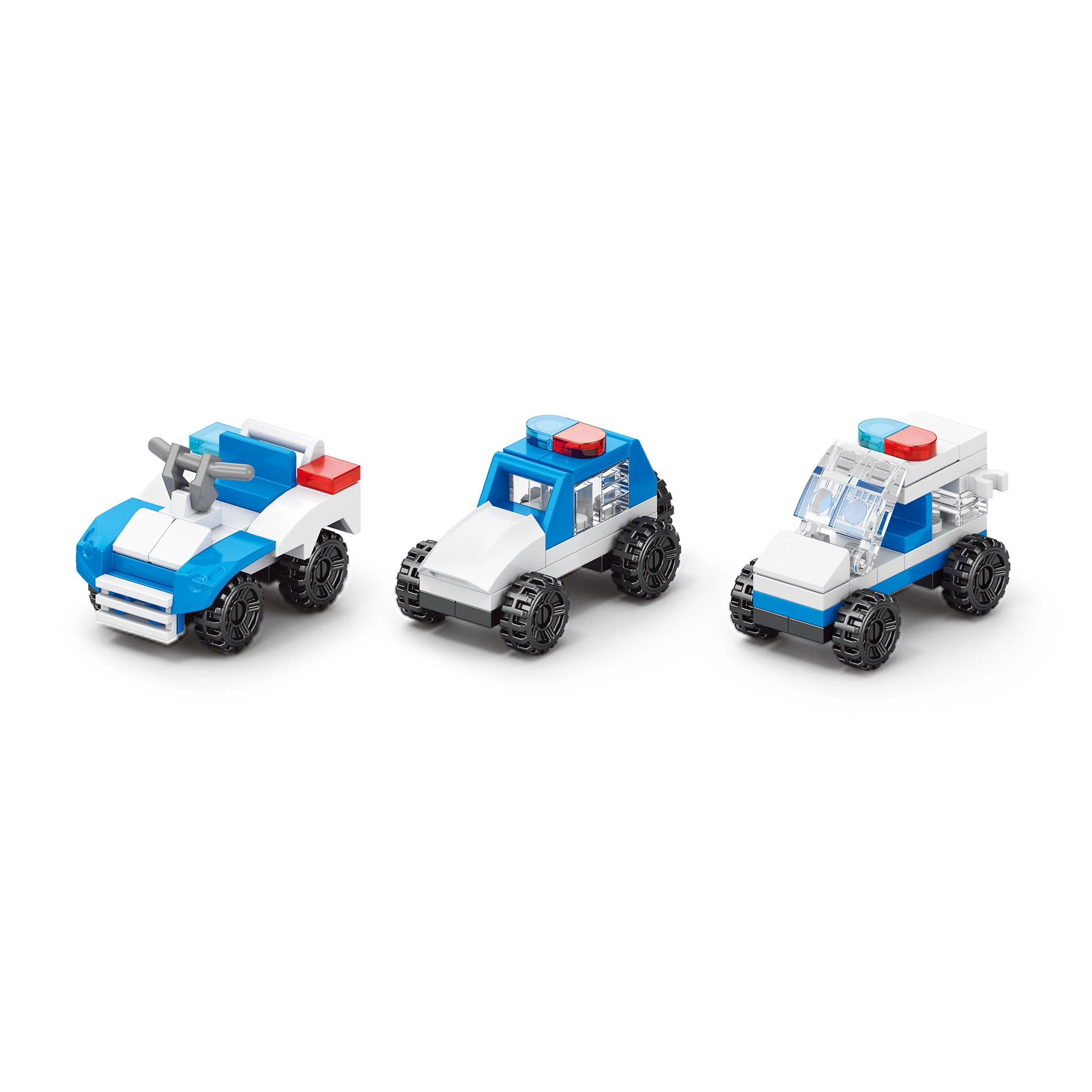 Modro-bela barvna shema, prozorna okna in rdeče-modre luči dajejo modelom avtentičen videz pravih policijskih vozil.