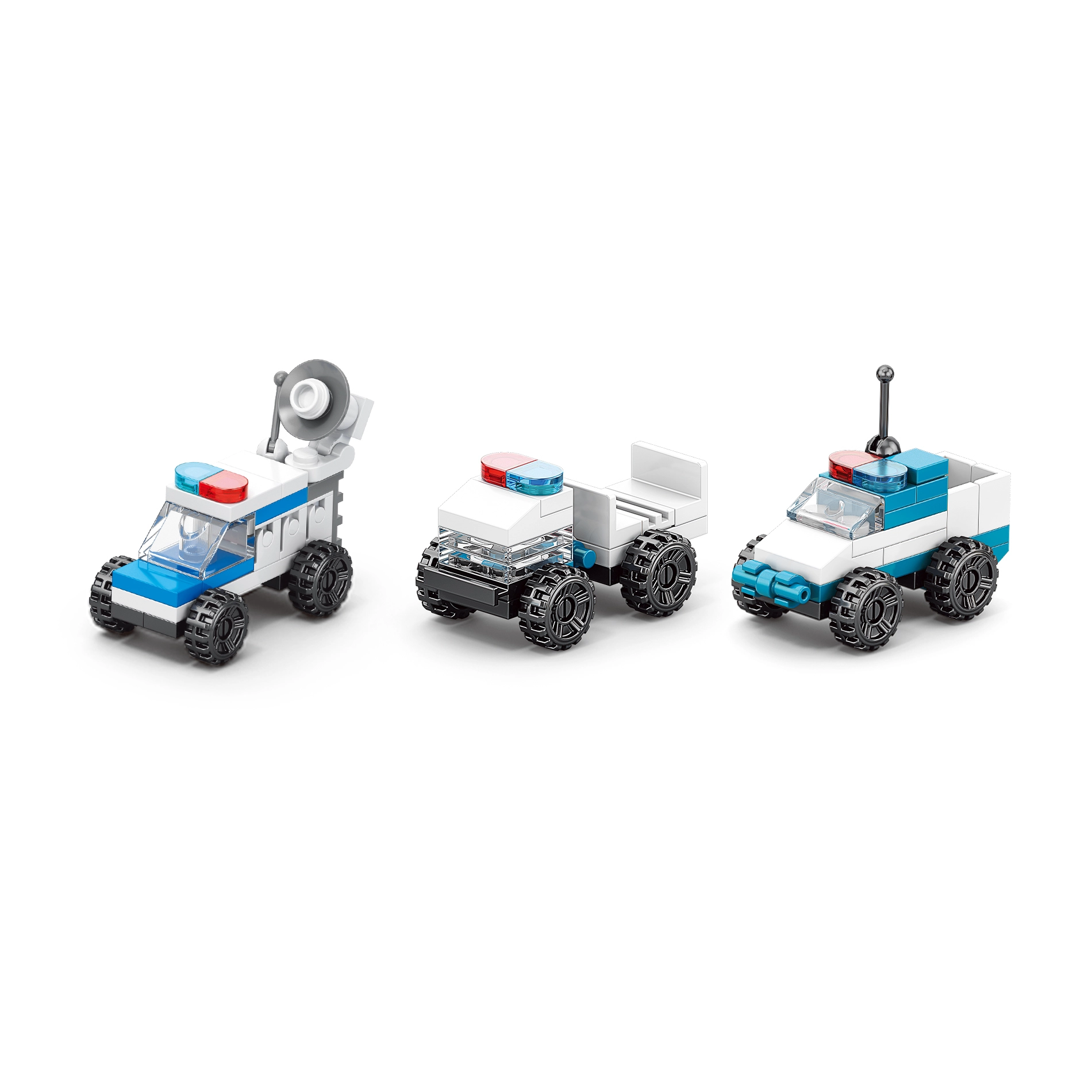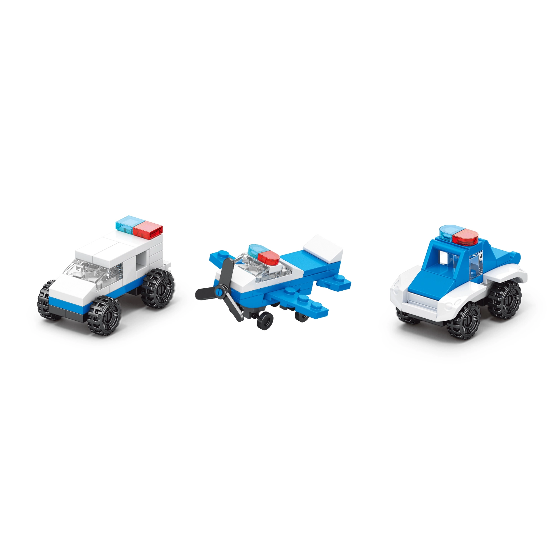 Zgradite patruljno vozilo, tovornjak s prikolico, helikopter, čoln in druge različice. Vsako sestavljanje prinaša nove zgodbe in igralne scenarije.
