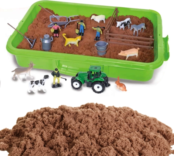 Odkrijte zabavni svet kmetije s kreativnim kompletom kinetičnega peska. V praktičnem kovčku vas čaka kar 1500 g mehkega, oblikovalnega peska v rjavi barvi, zeleni traktor, figurice kmetov in domače živali. Kovček hkrati služi kot igralna kad, ki ohranja red in omogoča čisto, senzorično in kreativno igro doma ali na poti.