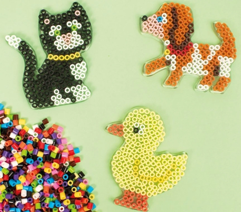 Prozorne podloge za likalne perlice Ø 5 mm znamke PLAYBOX olajšajo ustvarjanje pisanih živalskih motivov. So vzdržljive, večkrat uporabne in zaradi transparentne izvedbe odlično delujejo s šablonami. Popolne za kreativno ustvarjanje doma, v šoli in v krožkih – pomagajo razvijati fino motoriko in domišljijo.