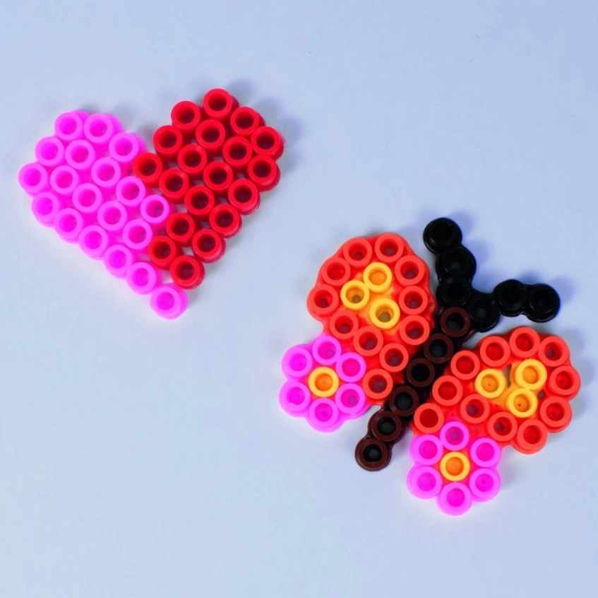 Ustvarjajte pisane motive iz velikih likalnih perlic preprosto in pregledno. Prozorne ploščice PLAYBOX v obliki metulja in srca so idealne za začetnike in napredne. Zaradi jasno razporejenih trnov in združljivosti s perlicami Ø 9 mm je sestavljanje vzorcev intuitivno in zabavno.