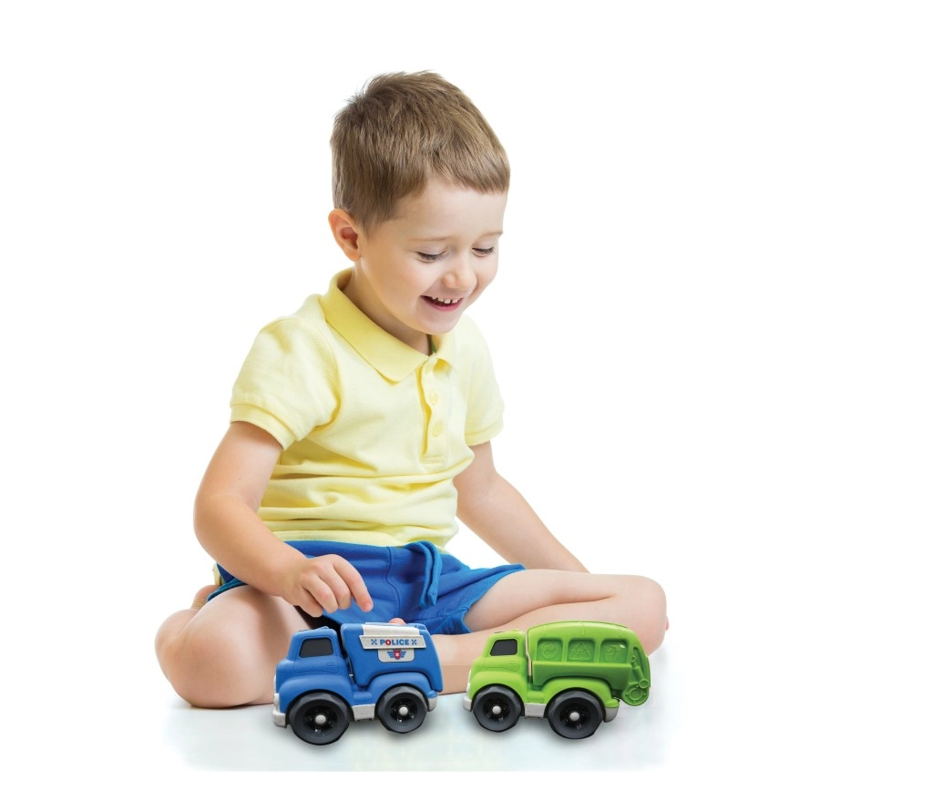Otroke pritegnejo izrazite barve modrega policijskega in zelenega komunalnega vozila ter reliefni detajli, kot so napis »Police«, smetnjak in tematske piktograme. Igra z avtomobilčki podpira razvoj motorike, koordinacijo in igre vlog, navdihnjene z resničnim svetom.