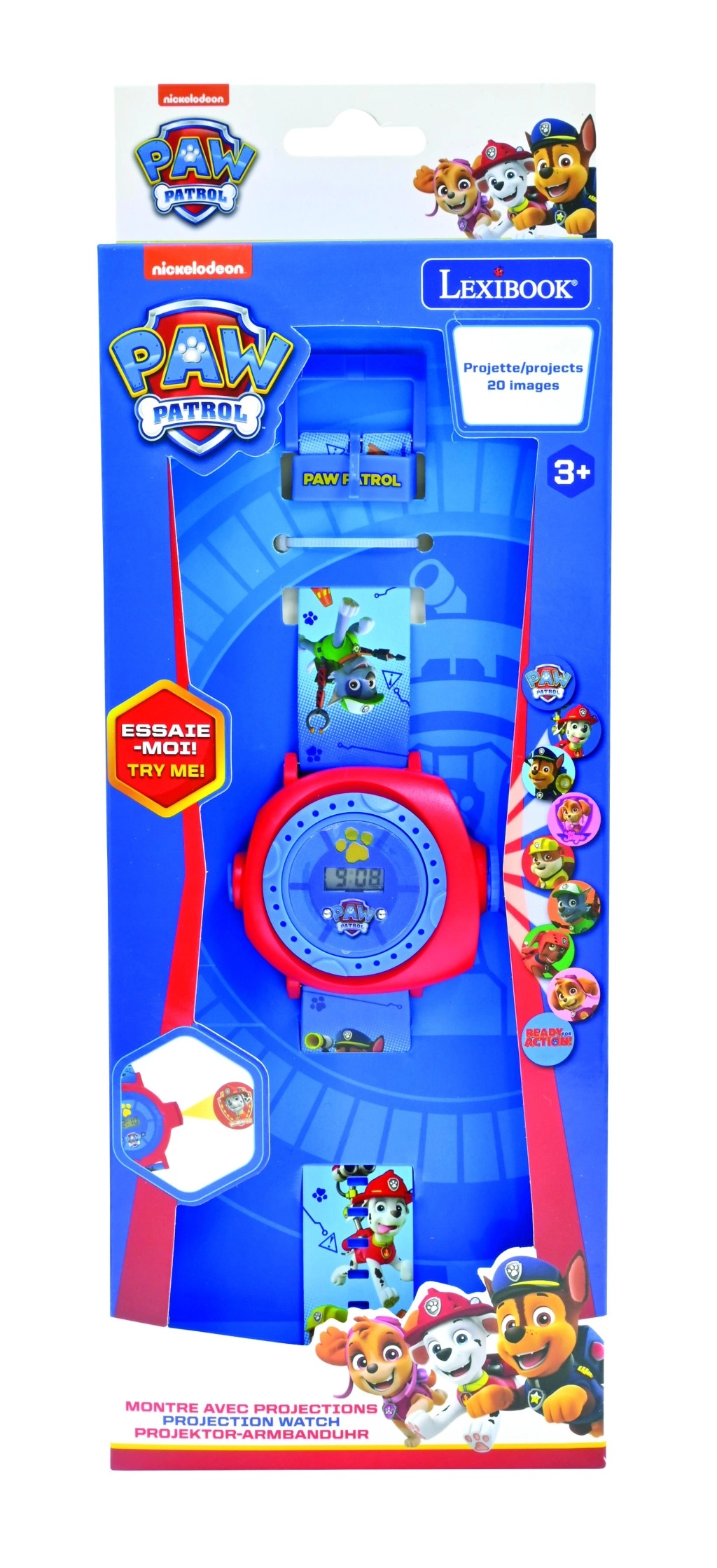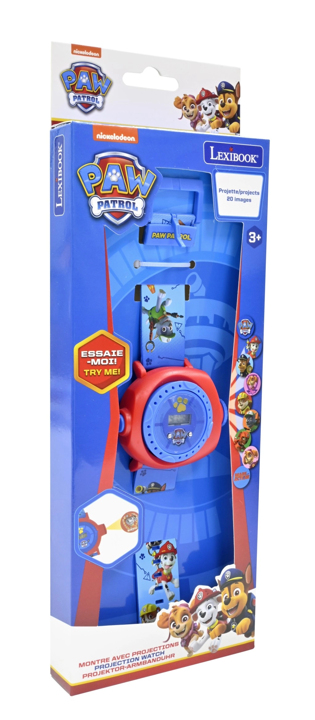 Vgrajen projektor projicira do 20 barvitih motivov iz TAČK NA PATRULJI – enostaven zagon in takojšnja zabava na katerikoli gladki površini.