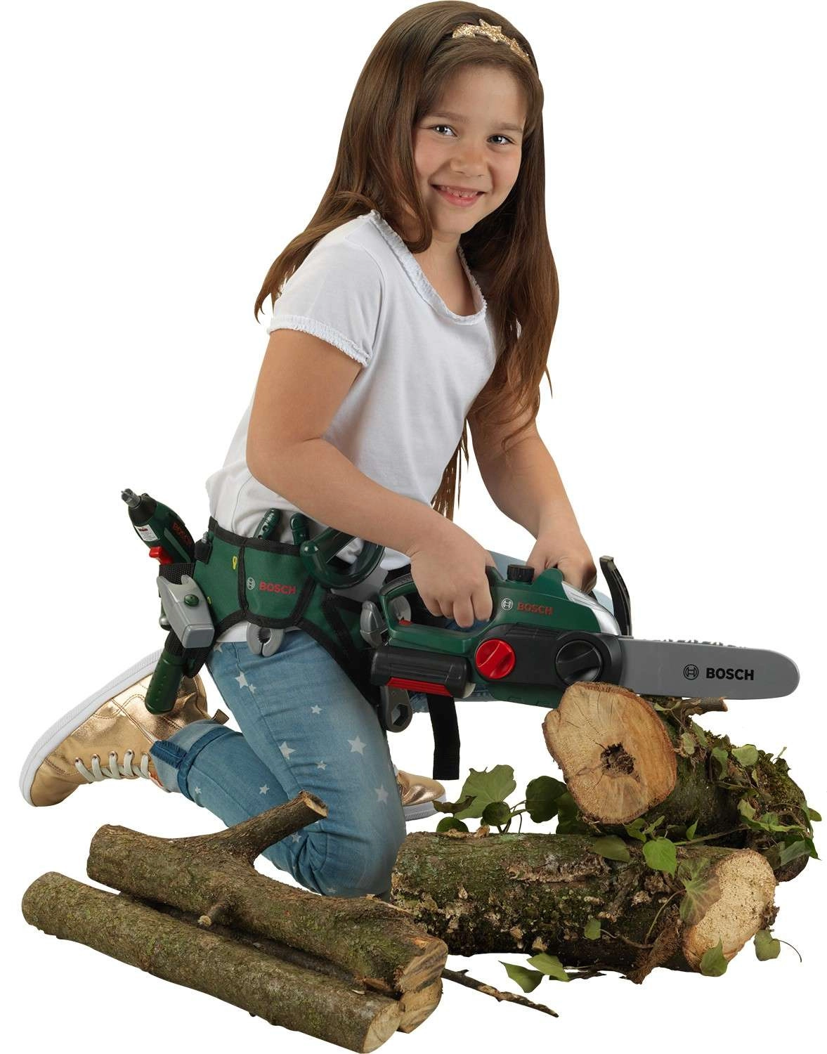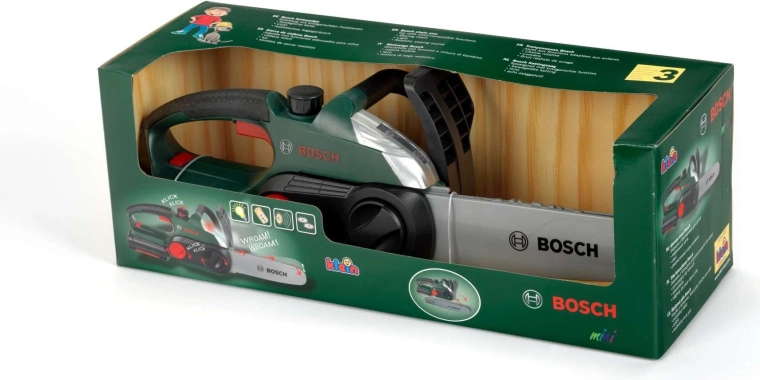 Ta otroška brezžična verižna žaga zvesto posnema pravi pripomoček BOSCH – vključno s temno zeleno barvo z rdečimi in srebrnimi elementi. Izdelana je čvrsto in z občutkom za detajle, zato bodo otroci uživali v avtentični igri sekača ali vrtnarja v popolni varnosti.