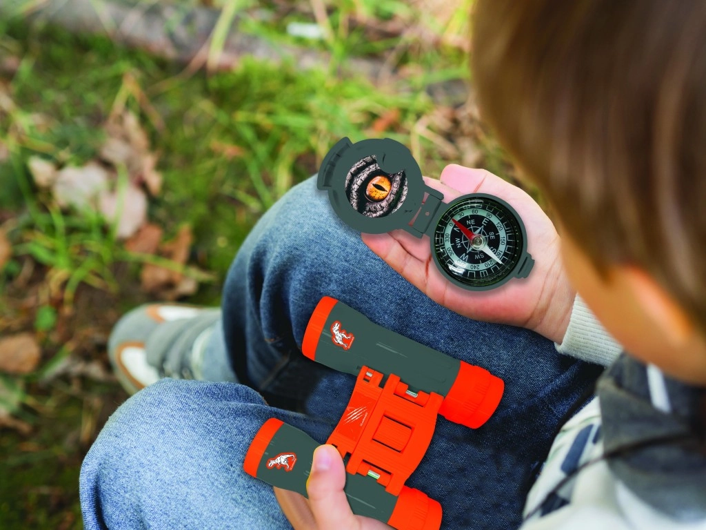 Zložljiv daljnogled za boljše opazovanje in kompas s pokrovčkom za lažjo orientacijo na terenu – idealna kombinacija za igre na prostem.
