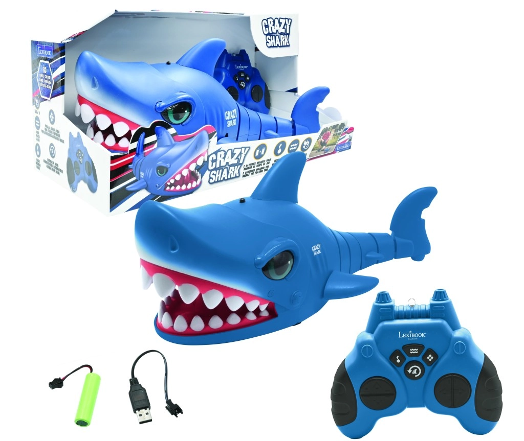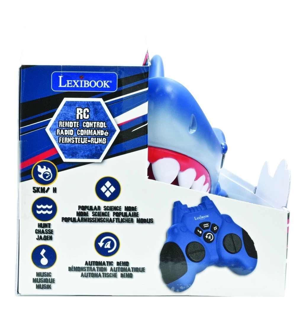 Interaktivni morski pes Lexibook otrokom prinaša realistično gibanje, izrazit dizajn in obilico učinkov. Zaradi gibljivega segmentiranega telesa, zvokov in zabavnih načinov (glasbeni, lov, samodejna demonstracija) ponuja pestro igro doma in na prostem. Upravljanje je intuitivno in prilagojeno majhnim rokam.