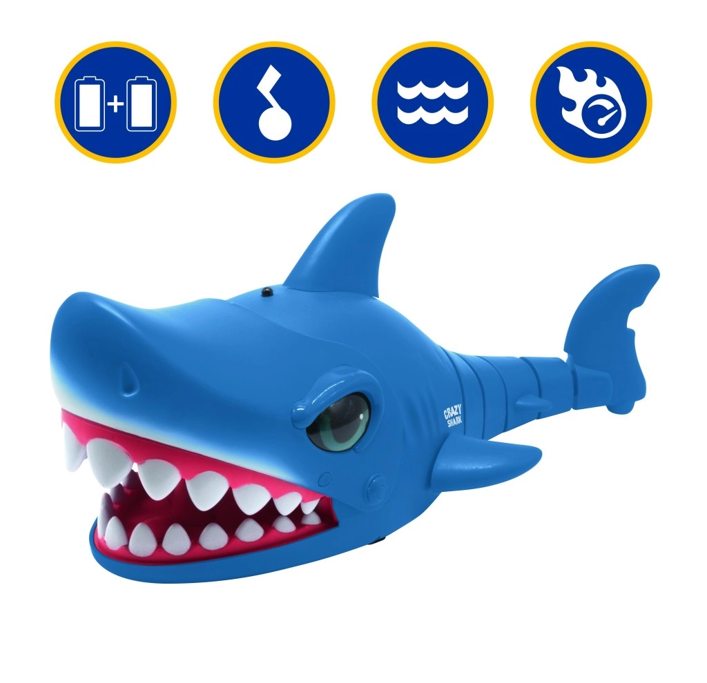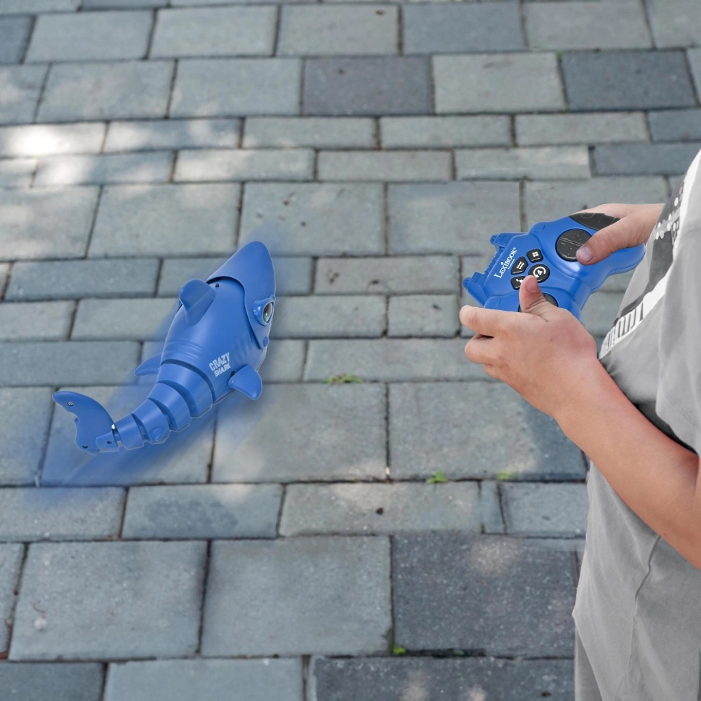 Morskega psa je enostavno voditi v vse smeri, doseže hitrost do 5 km/h in zahvaljujoč odpornemu plastiku zmore gladke površine in pločnike. V paketu sta 2 polnilni bateriji NiMH in USB kabel za preprosto in okolju prijazno polnjenje.