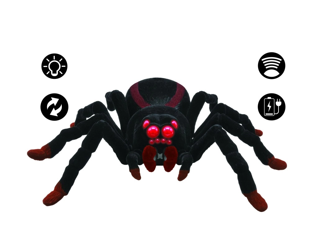 Ta realistični RC pajek zvesto posnema gibanje pravega členonožca in takoj pritegne pozornost. Mehki pliš daje igrački avtentičen videz in prijeten otip, izrazite rdeče LED oči pa poudarijo strašljiv učinek – popolno za zabavo, potegavščine in tematska praznovanja.