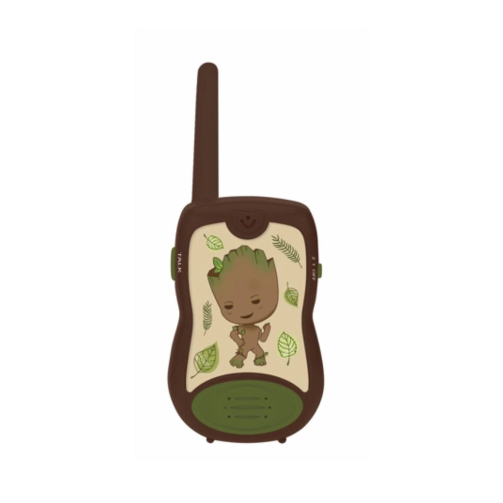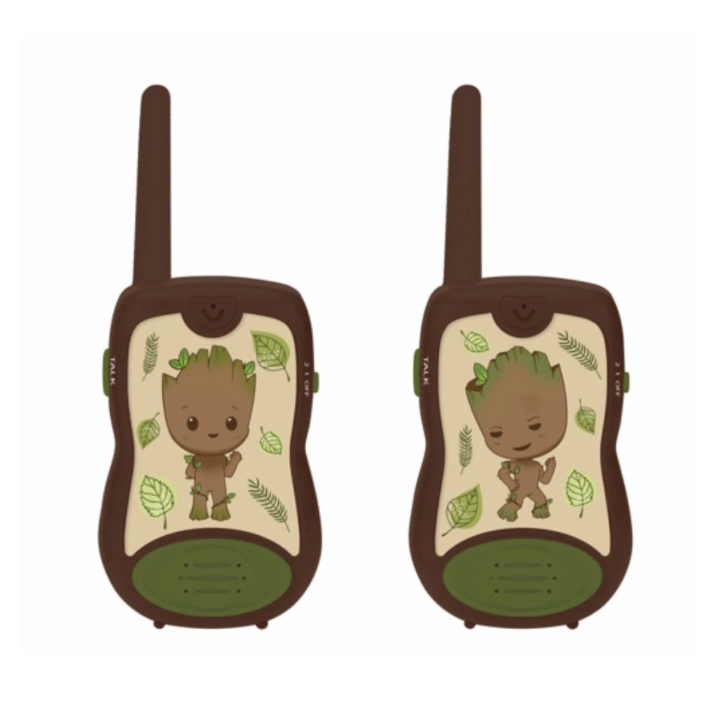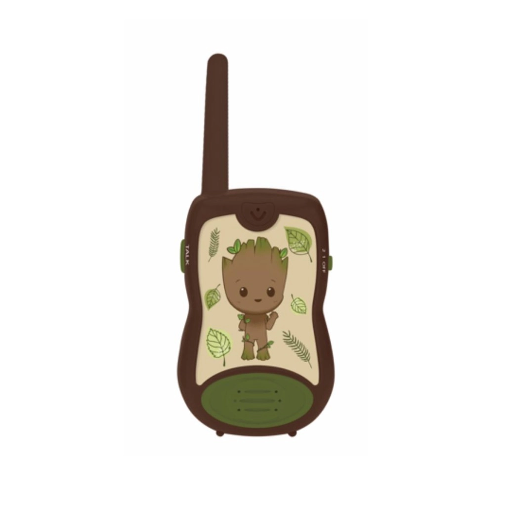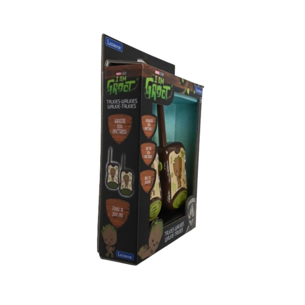 Zabavna in varna komunikacija za male pustolovce – otroški radijski sprejemniki LEXIBOOK Groot z motivom lika GROOT iz vesolja MARVEL ponujajo doseg do 200 m, preprosto upravljanje in trpežno zasnovo. Ergonomska oblika za majhne roke, izrazit gumb TALK in preklopnik kanala zagotavljajo, da bo komunikacija enostavna, igra pa polna domišljije.