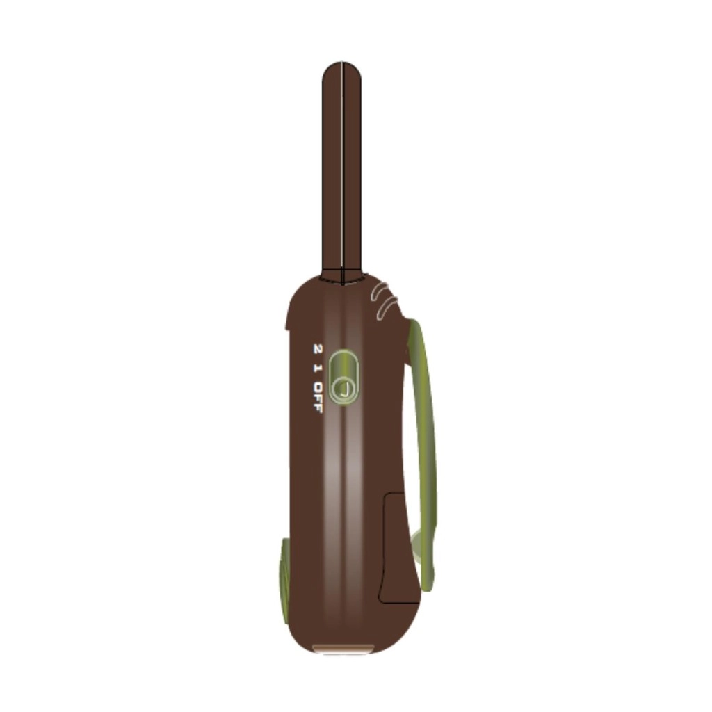 Vsak sprejemnik ima ergonomsko obliko primerno za majhne otroške roke, velik stranski gumb TALK za takojšnje oddajanje ter stikalo za vklop/kanal za preprosto uporabo. Vgrajena antena pomaga pri stabilnem sprejemu, glasen zvočnik pa zagotavlja čist prenos glasu.