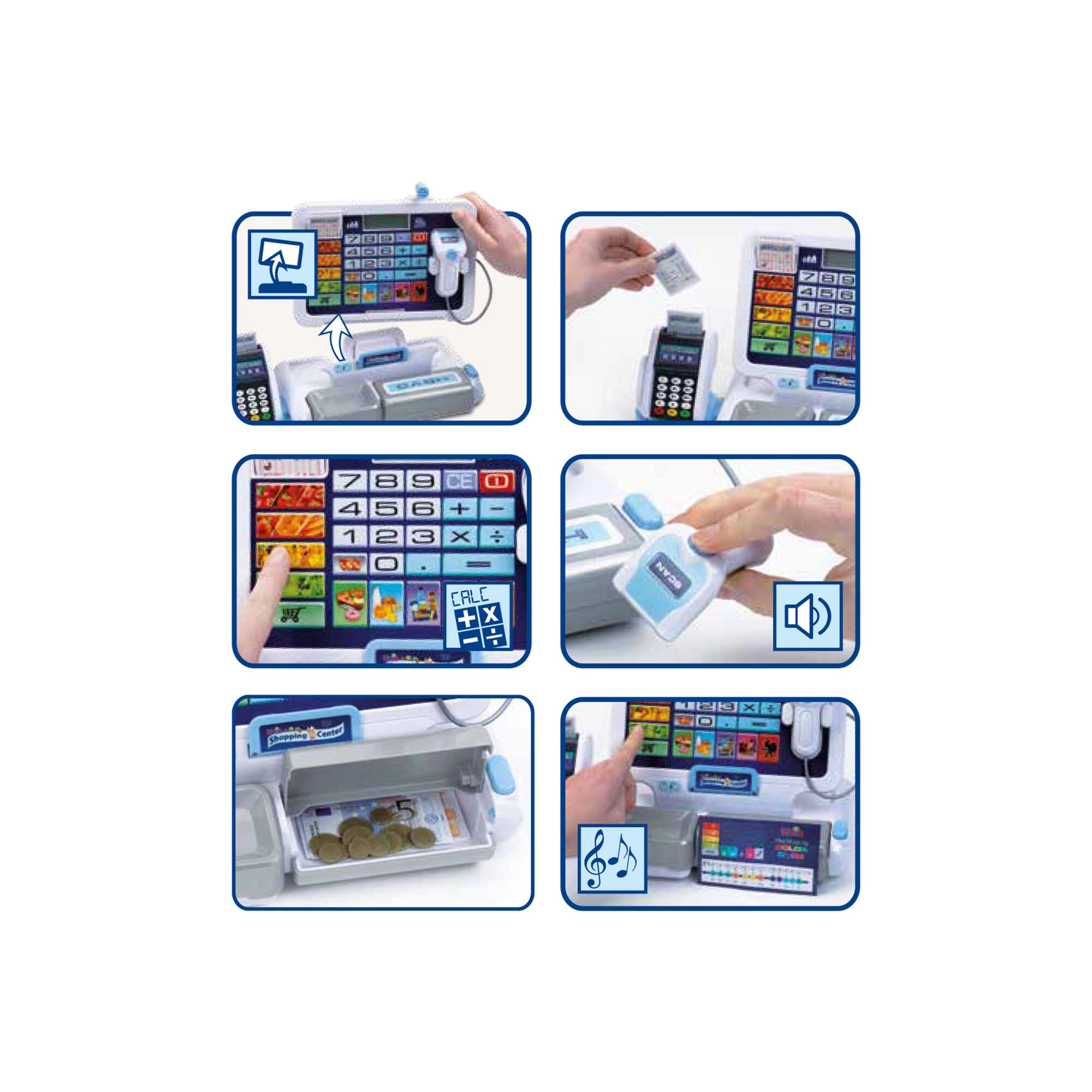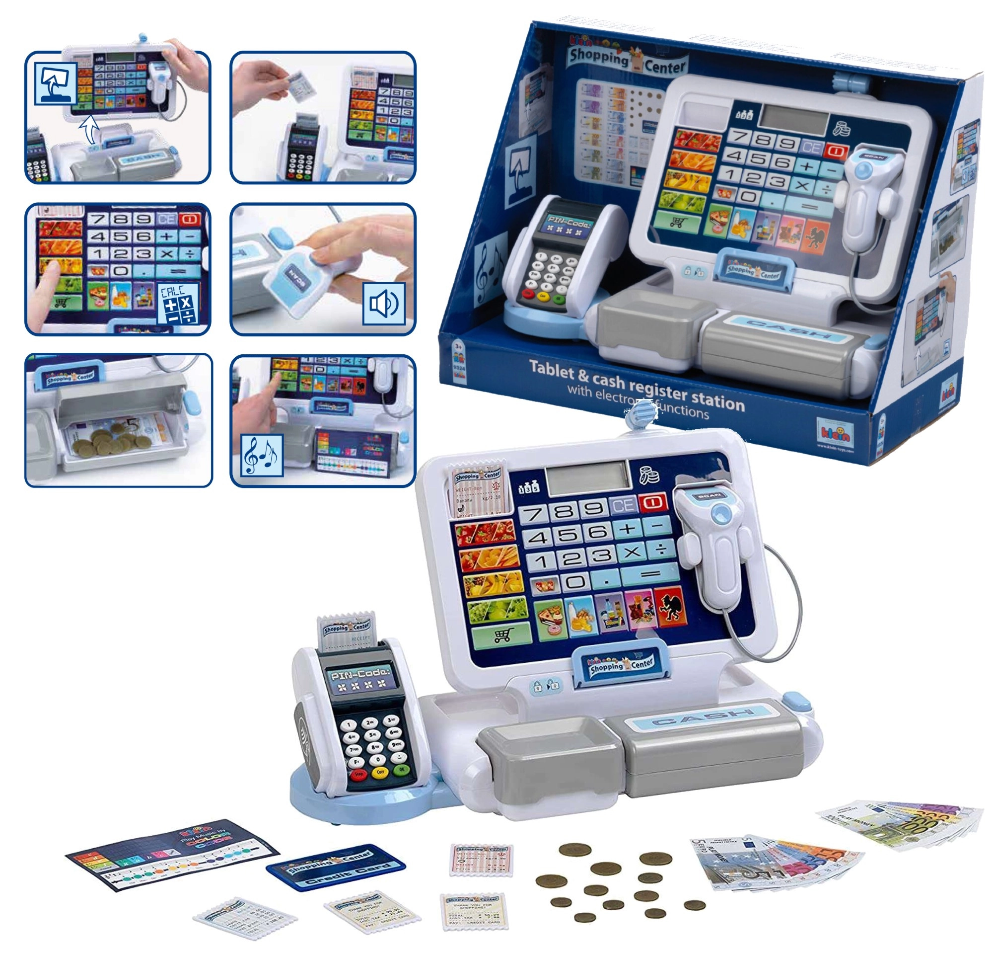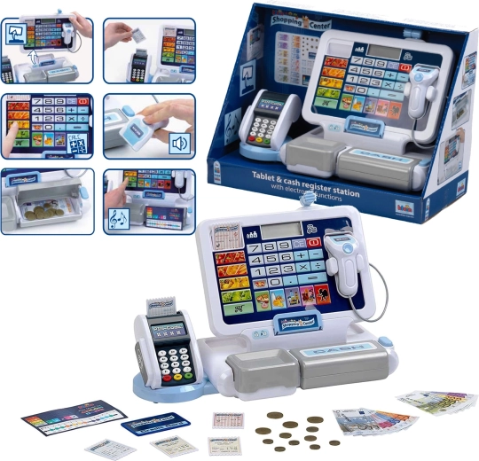 - zaslon s kalkulatorjem, skener, čitalnik kartic, odpirajoč se predal, zvočni učinki