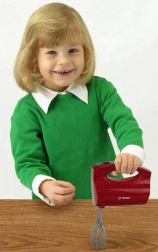 Realistični otroški mešalnik BOSCH znamke Klein otrokom prinaša varno in zabavno igro kuhanja. Je zvesta kopija pravega aparata, ima odstranljiva mešala, preprosto upravljanje z gumbom in klikalno »regulacijo« hitrosti. Odlična izbira za male kuharje in kuharice, ki radi posnemajo odrasle.