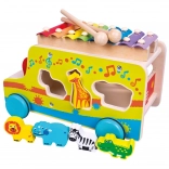 Ta pisano obarvan leseni tovornjak vas bo navdušil s svojo vsestranskostjo. Spodbuja fino motoriko in razvoj glasbenih sposobnosti zahvaljujoč vgrajenemu ksilofonu.