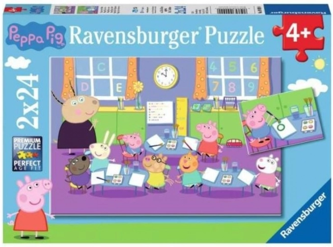 Ta dvojni puzzle znamke Ravensburger prinaša dve privlačni ilustraciji z motivom PEPPA PIG in celotnega razreda. Zahvaljujoč natančni izdelavi in vzdržljivim koščkom se puzzle odlično sestavlja in zdrži tudi pogosto uporabo.