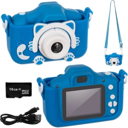 Podprite ustvarjalnost in zabavo otrok s kompaktim otroškim fotoaparatom Kruzzel. Ponuja fotografije 3 MP, Full HD video z zvokom, pregleden 2'' LCD zaslon in preprosto upravljanje za otroke od 3 let. Ne manjkajo filtri in zabavni okvirji, pet vgrajenih iger, 16 GB kartica v paketu ter prisrčen mačji ovitek za varno in slogovno uporabo.