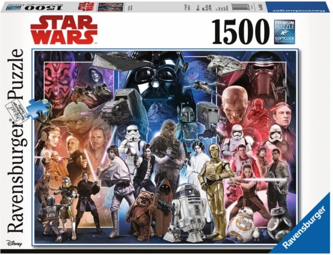 Odkrijte ikonično vesolje Star Wars v obliki podrobnega motiva na sestavljanki s 1500 kosi. Vrhunska kakovost izdelave Ravensburger prinaša natančne oblike, trpežen karton in žive barve za dolgotrajen užitek pri sestavljanju.