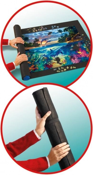 Valjasta podloga RAVENSBURGER je pametna rešitev za ljubitelje sestavljank, ki želijo imeti svojo razporejeno sliko vedno na varnem. Tekstilna, nedrseča površina in trden plastičen valj držita posamezne koščke na mestu, ne da bi se pomešali. Zaradi dimenzije 110 × 66 cm zanesljivo sprejme sestavljanke večine znamk do 1500 kosov.