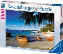 Popestrite svoj prosti čas s to čudovito sestavljanko, ki vas popelje na tropski otok, poln palm in turkiznega morja. Vsak izmed 1000 koščkov predstavlja del te eksotične krajine, pri čemer se vsak košček natančno prilega na svoje mesto zahvaljujoč posebni tehnologiji softclick podjetja Ravensburger.