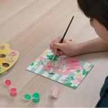 V paketu je trdno platno s predlogo, akrilne barve, čopič, kartonasto stojalo za lončke in okvir. Odprite in lahko takoj ustvarjate.