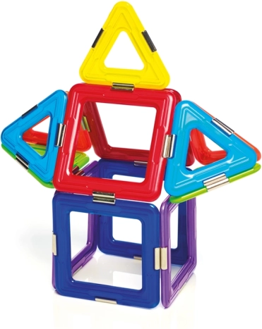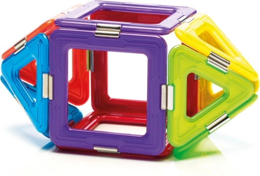 Komplet vsebuje skupno 6 magnetnih kvadratov, 8 trikotnikov in 1 vrtavko, kar omogoča širok prostor za eksperimentiranje. Ta komplet je ne samo zabaven, ampak tudi izobraževalen in razvija otroške spretnosti, kot so prostorska predstava, koordinacija, koncentracija in kreativnost.