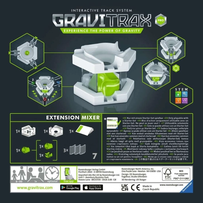 GraviTrax Pro Mixer Razširitveni Set je dinamična razširitev vašega sistema Gravitrax, obljubljajoč ure vznemirljivega gradjenja in eksperimentiranja s krožno potjo. Zasnovano za fante in dekleta od 8 let naprej, ta mixer dodatek prinaša novo raven vznemirjenja in izzivov vašemu obstoječemu kompletu.