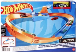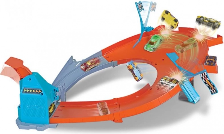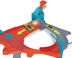 Odkrijte adrenalinski dirkalni set, v katerem se mladi vozniki pomerijo v 3 disciplinah: drift krogu s stranskim startom, vzporednih dirkah z odštevanjem in vzponu v klanec z jedrskim izstrelkom. Zahvaljujoč modularnemu sistemu lahko set kombinirate z drugimi progami HOT WHEELS in ustvarite svoj veličasten svet hitrosti.