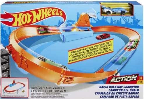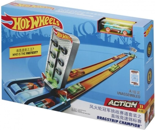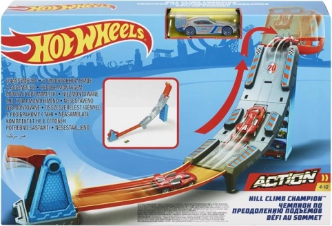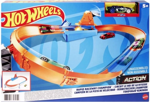 S setom Rivalstvo prvakov znamke HOT WHEELS bodo otroci uživali v dirkah, driftih in akrobacijah na oranžnih progah s spuščalniki in zavoji. Ne manjkajo startni portal, zmogljiv izstreljevalnik, podirčne zastavice za točke in 1 kovinski avtomobilček za takojšnji začetek.