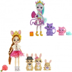 Potopite se v čarobno kraljestvo Enchantimals, kjer ima vsaka lutka svojega živalskega spremljevalca in dolgotrajna prijateljstva. Ta paket ponuja dve možnosti: Cambrie Cow s kravico Ricotto in dvema teličkoma ali Dinah Duck z račko Slosh in tremi majhnimi račkami. Vsaka lutka ima odstranljiva oblačila in čeveljce, kar omogoča kreativno stiliranje med igro.
