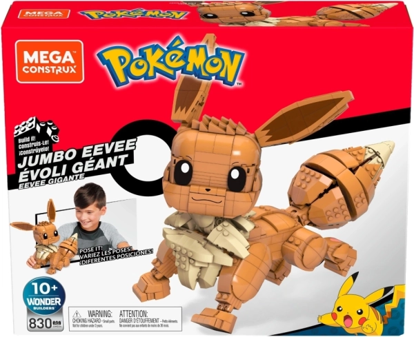 Uživajte v sestavljanju in razstavljanju skoraj življenjske različice vašega najljubšega Pokémona. Jumbo Eevee znamke MEGA (prej Mega Bloks) je sestavljen iz 824 natančno zasnovanih delov in po sestavi meri približno 28 cm. Zaradi premišljene konstrukcije je model popolnoma nastavljiv – lahko ga posedete, postavite in nastavite v dinamične bojne drže.