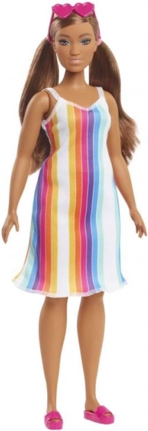 Lutka ima stilski poletni outfit z barvami in vzorci, navdihnjenimi s plažo.