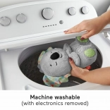 Igračo boste zlahka ohranili čisto – po odstranitvi elektronske enote jo lahko operete v pralnem stroju. Mehak površinski material in različne strukture spodbujajo senzorični razvoj in vzbujajo naravno radovednost otrok. Idealno za umirjanje pred spanjem in mirne trenutke čez dan.